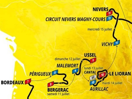 - Aurillac (Cantal 15 – ~25 000 hab.) : ville étape pour la 15ᵉ fois