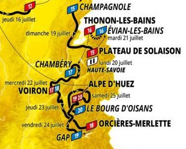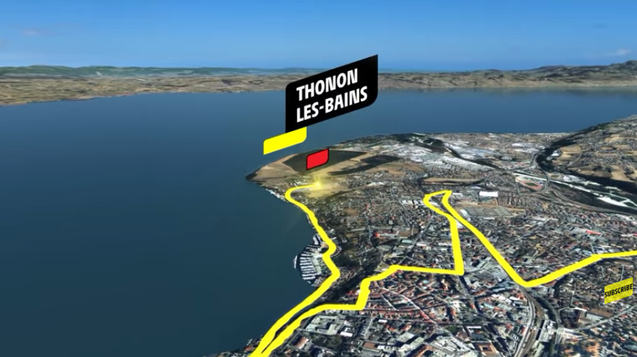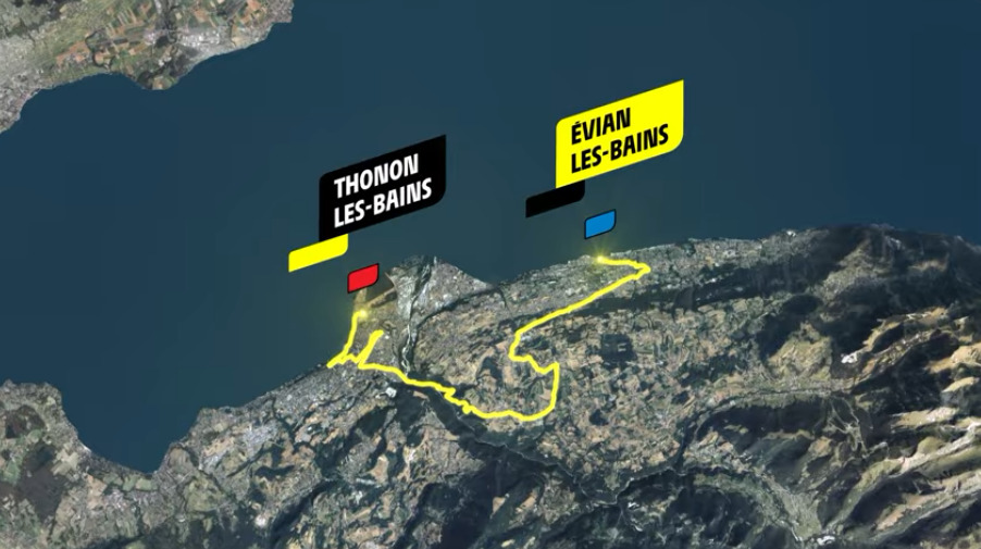 Cette 16ᵉ étape est un contre-la-montre individuel de 26 km entre Évian-les-Bains et Thonon-les-Bains le long du lac Léman. Le chrono est piégeux : il comporte notamment la côte de Larringes (9,7 km à 4,3 %), ce qui en fait un parcours loin d’être totalement plat et susceptible de creuser des écarts entre favoris.
