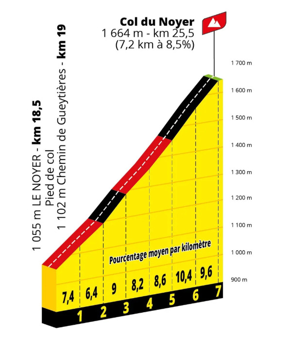 - Km 25,5 : Col du Noyer - 1664 m - 7,2 km à 8,5%