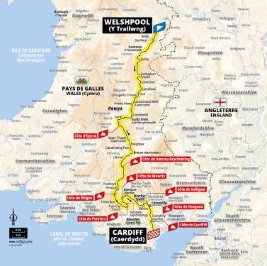 Le point clé de la fin d’étape sera la côte de Caerffili, longue de 2 km à 8,1 %, située à 12 km de l’arrivée. C’est là que les favoris peuvent faire la différence avant une traversée finale de Cardiff, annoncée rapide, à proximité du château de Cardiff et du Principality Stadium.